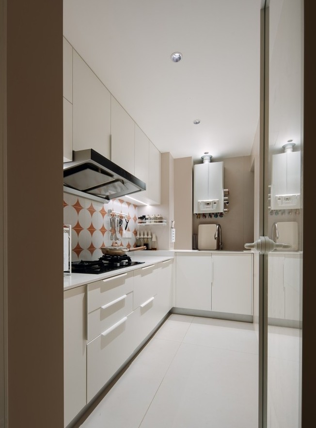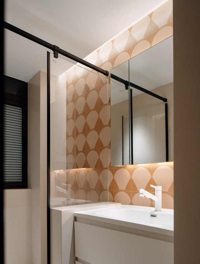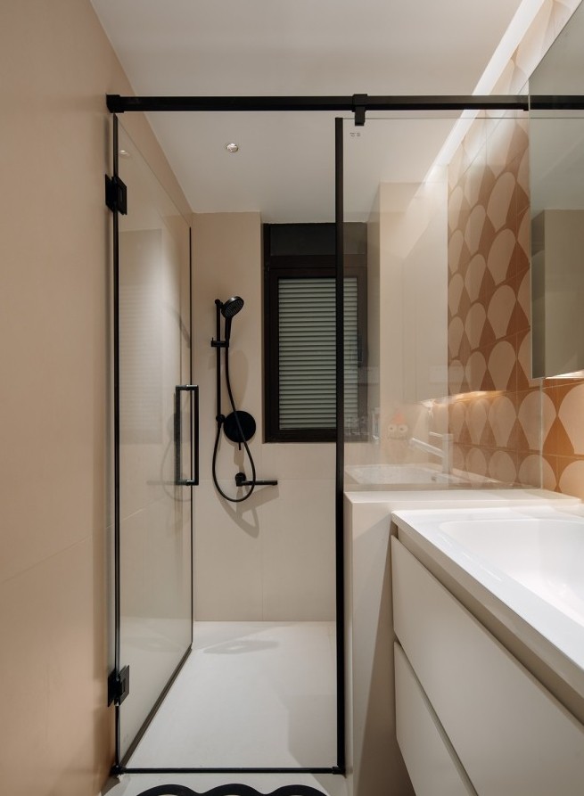 廚房和衛(wèi)生間的設(shè)計(jì)同樣不乏亮點(diǎn)。白色櫥柜與溫柔奶油色大磚墻面的搭配,提升了光線;復(fù)古焦糖色小磚的點(diǎn)綴,制造了視覺(jué)焦點(diǎn)。衛(wèi)生間的文藝復(fù)古感焦糖色浴室,利用矮墻與極簡(jiǎn)玻璃隔斷,保證了浴室的清爽和整潔。鏡柜收納實(shí)用且美觀,復(fù)古焦糖貝殼小磚更是氛圍十足。