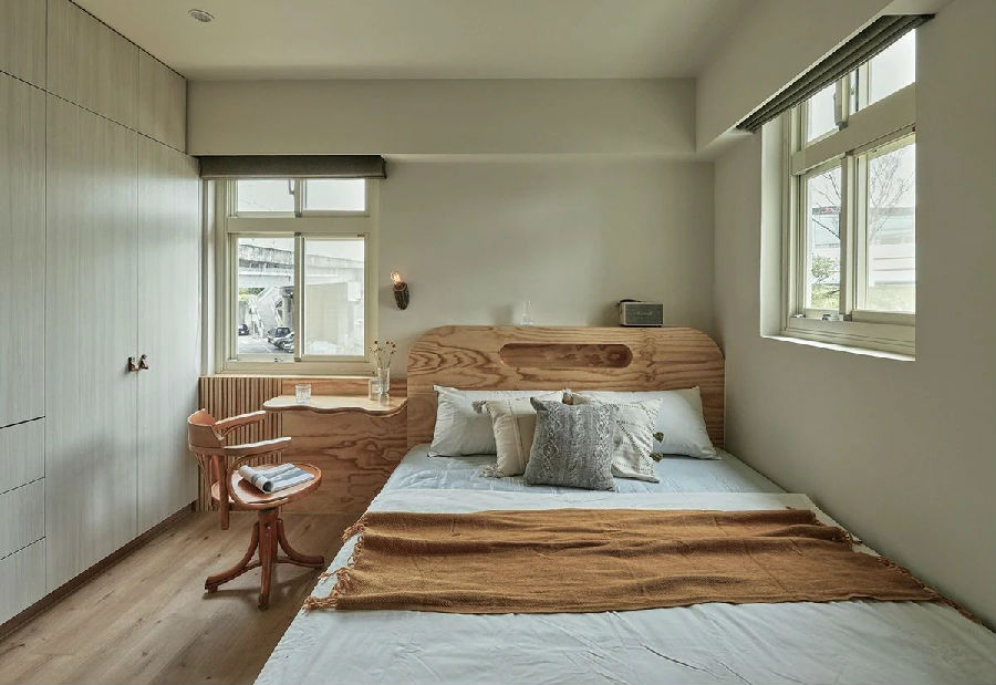 臥室則采用了紋理鮮明的木質(zhì)調(diào),構(gòu)建出床背板和簡(jiǎn)約書(shū)桌,展現(xiàn)出纖美細(xì)致的風(fēng)格。木質(zhì)元素的運(yùn)用,讓臥室充滿了自然與溫馨的氣息。