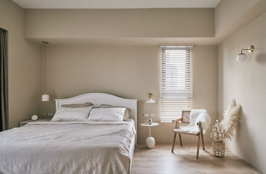 走進(jìn)主臥,你會被溫暖的“奶茶色”所包圍。白色的金屬燈飾和鄉(xiāng)村風(fēng)床頭板為空間增添了一抹獨特的韻味。業(yè)主將這個空間稱為“杏仁奶茶”,它帶給人們一種意外的甜蜜與俏皮感。