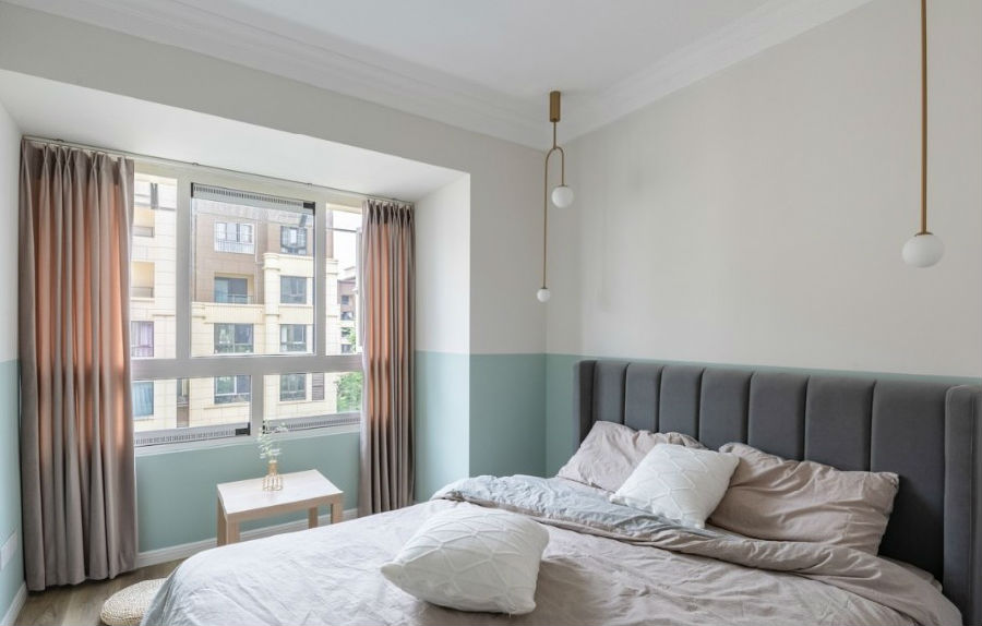 臥室的設(shè)計(jì)同樣精彩紛呈,摒棄傳統(tǒng)的設(shè)計(jì)方式,用疊加手法讓整個(gè)布局瞬間增加了空間感。梳妝臺(tái)與衣柜融為一體,更加方便又貼切生活。別具一格的小吊燈更是整個(gè)空間的焦點(diǎn),既有設(shè)計(jì)感又隨性自然。