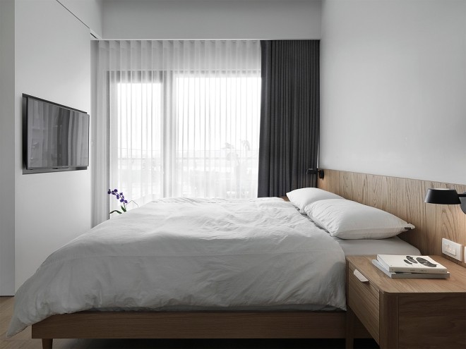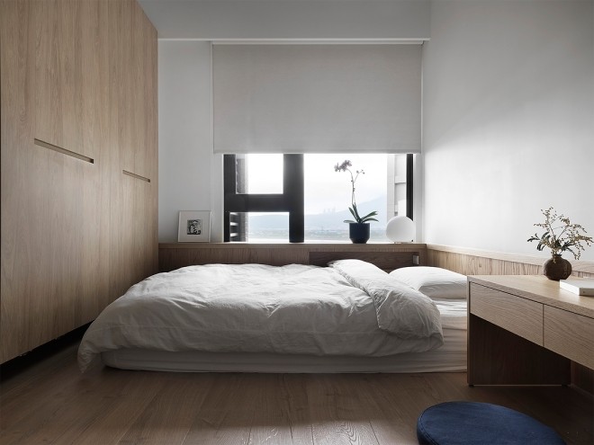 臥室里,落地窗讓陽光灑滿每個角落,帶來身心的愉悅。原木色的床頭柜散發(fā)家的溫暖,女主人的化妝臺則展示了幾何形的陽剛之美,平靜中蘊含著韻味,冷清中透露出溫暖。日式設計的地臺高低錯落,無論是分隔出的衣帽間還是墻邊的置物柜,都散發(fā)著奢華的氣息,同時又不失青春活力。