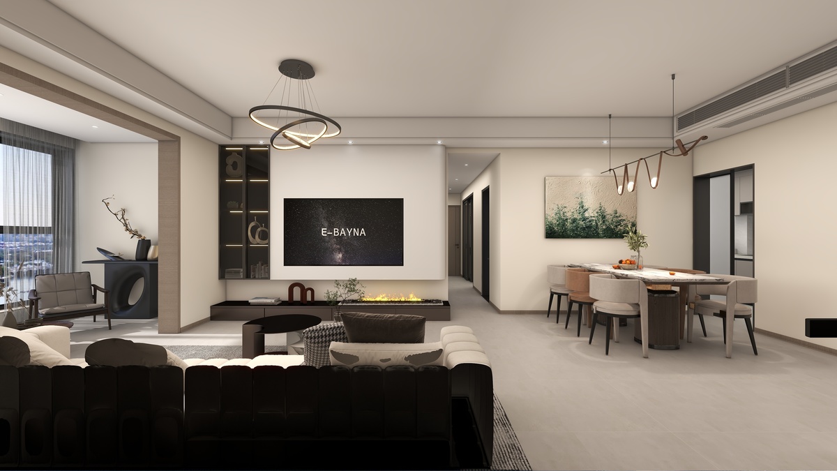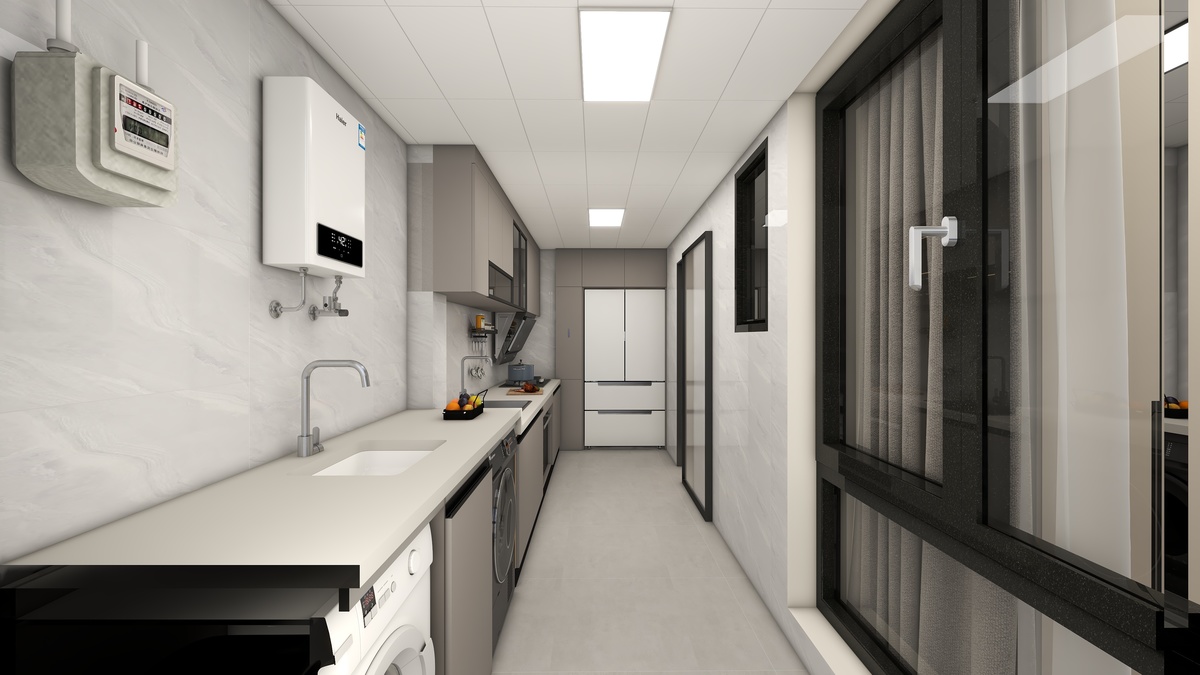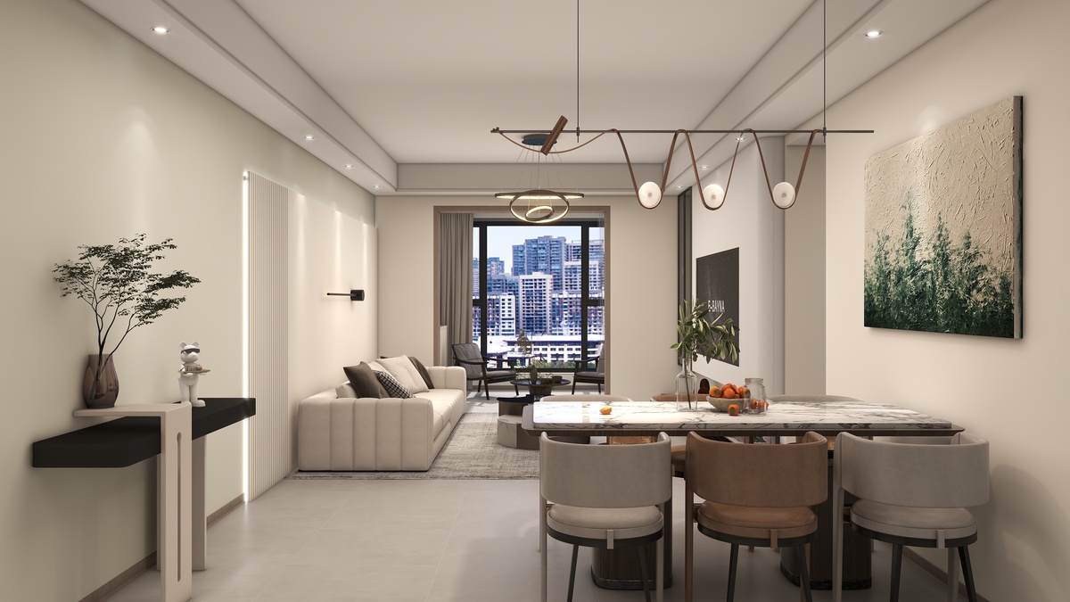 客餐廚的家具風(fēng)格和諧統(tǒng)一,美觀(guān)的餐桌與實(shí)用的廚房緊密相連,營(yíng)造出摩登時(shí)尚、即時(shí)互動(dòng)的就餐氛圍。