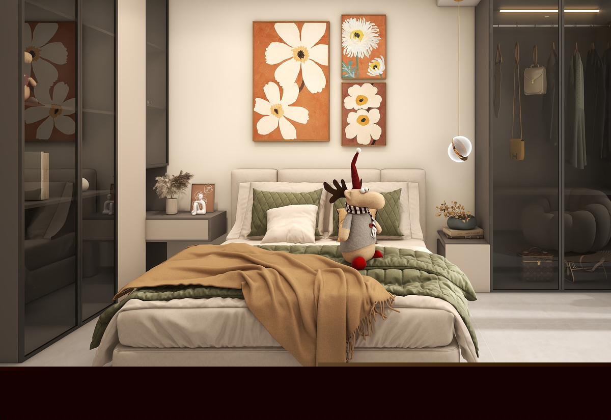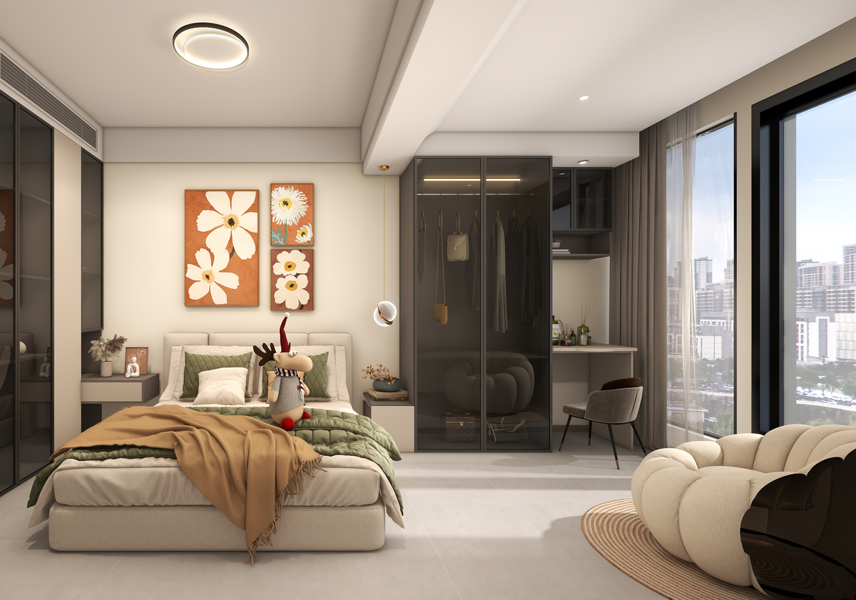 臥室的家具布置以個(gè)人需求為中心,在實(shí)用的前提下進(jìn)行適當(dāng)?shù)难b飾布置,家具的布置盡量沿著墻壁擺放,把活動(dòng)空間集中在臥室的中心,這樣的空間布局更顯空間大。同時(shí)也能增添更多的收納空間。