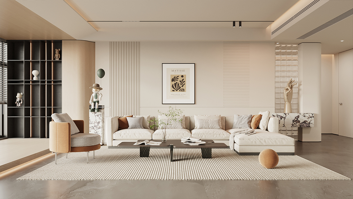 客廳的第一視覺(jué)便是寬闊感,空間的舒適度最大化的利用。大大的落地窗,透光的白紗窗簾搭配奶白色遮光簾,拉開(kāi)可以欣賞美景,拉上又可以舒舒服服的休息。