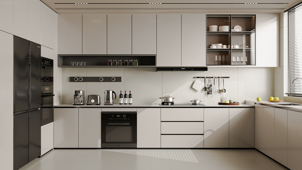 大大的餐邊柜既可以展示又能儲(chǔ)物,可以最大化的利用空間,強(qiáng)調(diào)就餐儀式的同時(shí),也將入戶和客餐廳動(dòng)線分為兩個(gè)回字形。呼應(yīng)了整體的主題色調(diào),極具設(shè)計(jì)感。