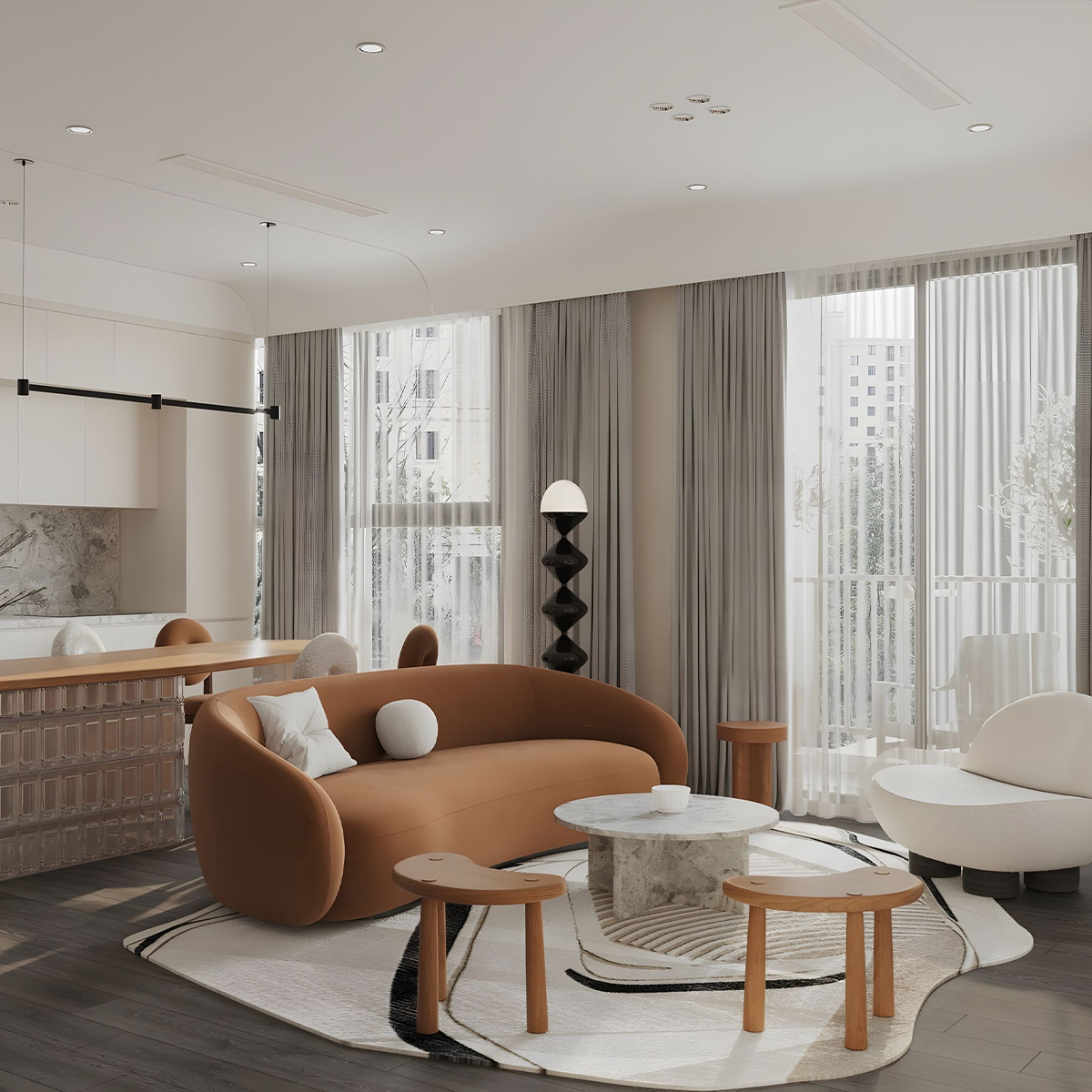 家的構建,一半圓滿,一半留白。輔以肌理材質、結構光影的層次變化,在寧靜溫潤的形制下,抒發(fā)明暗的節(jié)奏起伏,演繹一番靈動自由。