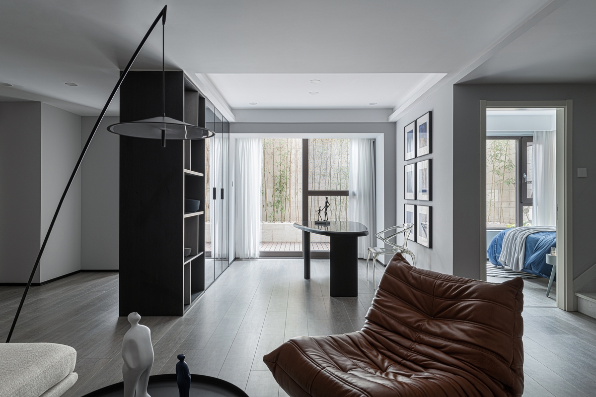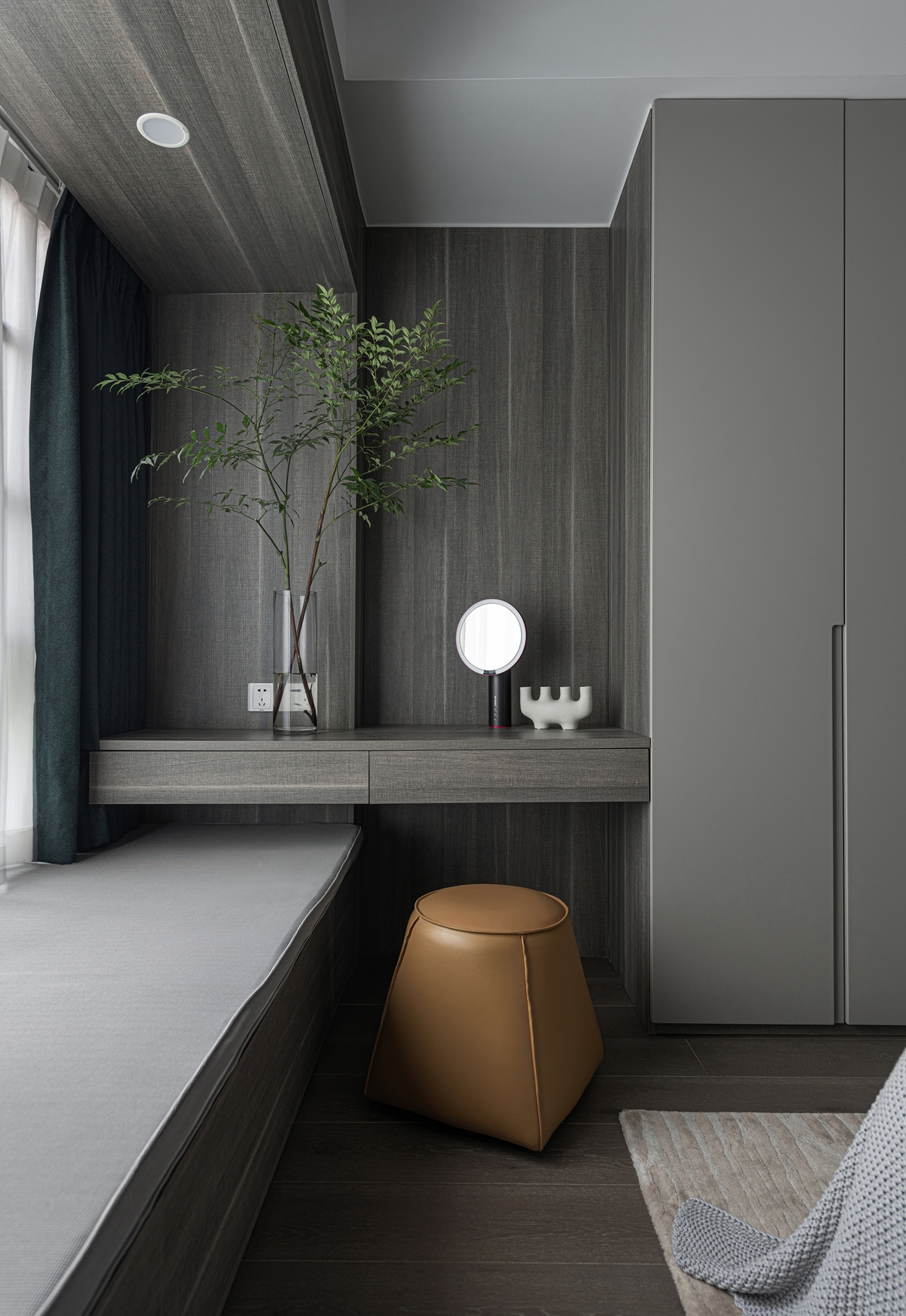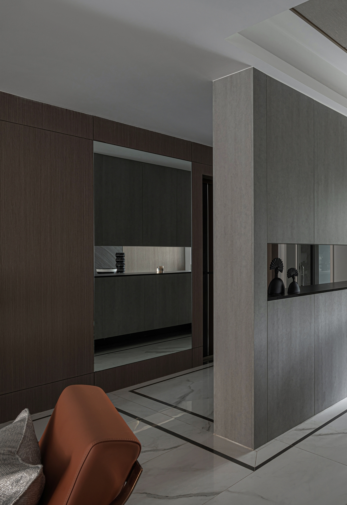 我們打破常規(guī)黑白灰的保守配色,愛(ài)馬仕橙的跳色成為空間焦點(diǎn)。暖色系的加入讓平鋪直敘的中性色空間氛圍生動(dòng)起來(lái),讓人感到溫馨舒適。