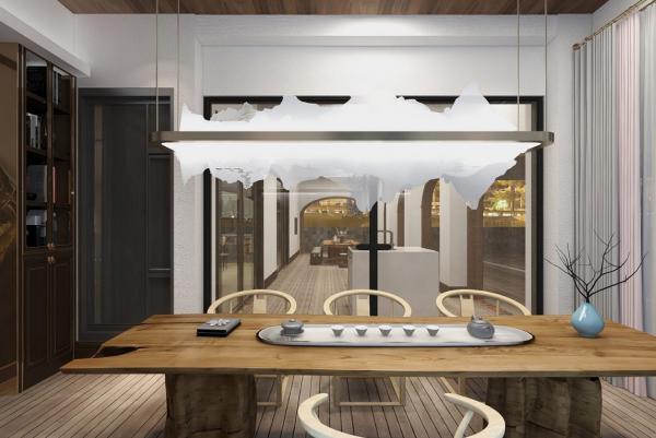 講究空間的層次感和通透性,通過隔斷、屏風等手法來劃分空間,同時注重空間的開放性和連貫性。