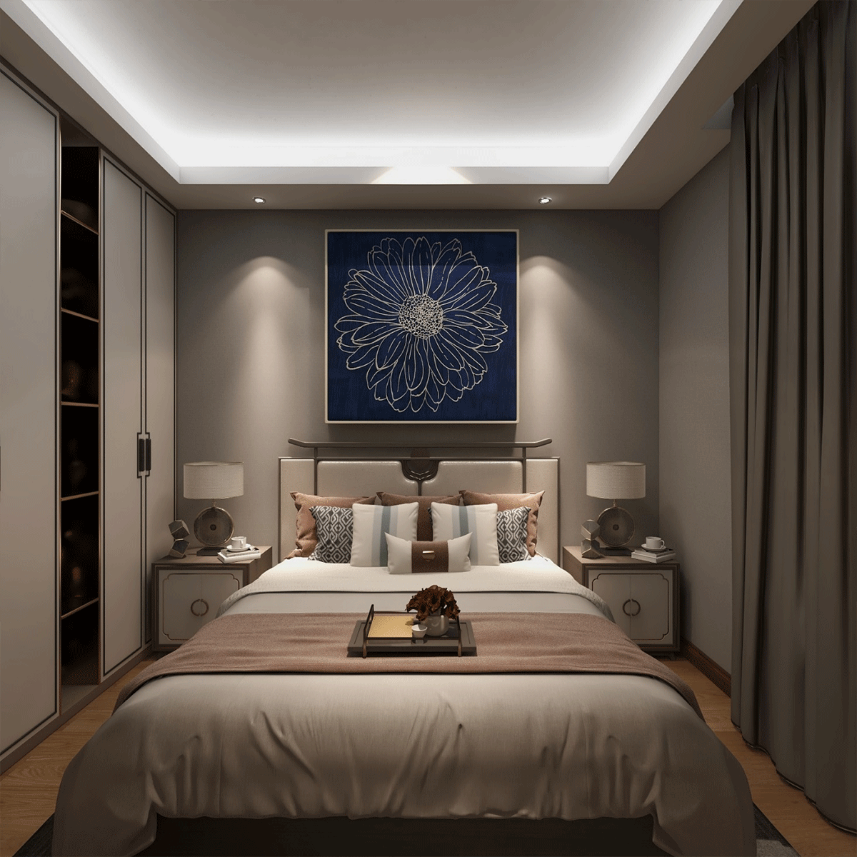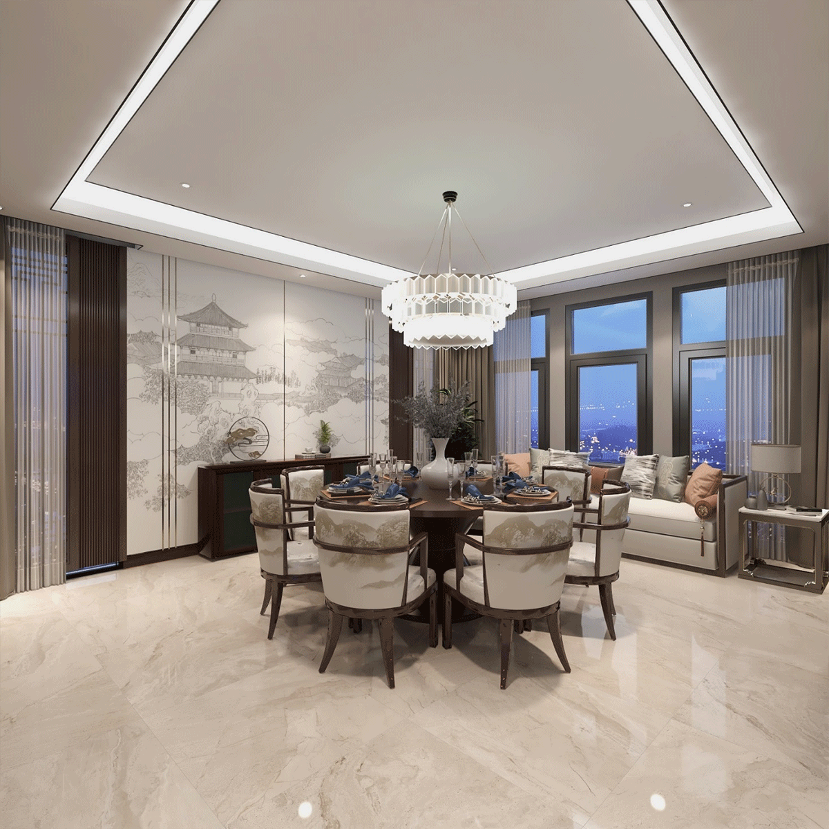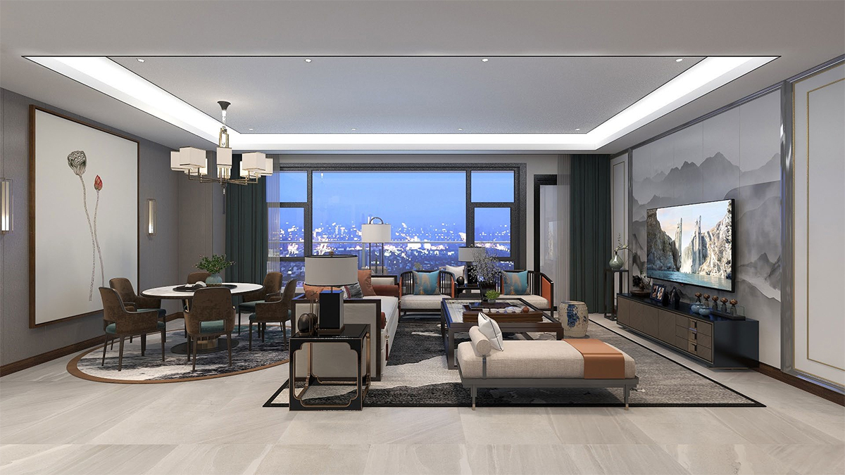將中式元素與現(xiàn)代設計巧妙結合,給予人沉穩(wěn)大氣,悠然古典的感覺。在布局上講究對稱均衡,端正穩(wěn)健,在裝飾細節(jié)上崇尚自然情趣,能夠充分體現(xiàn)中國傳統(tǒng)美學的精神