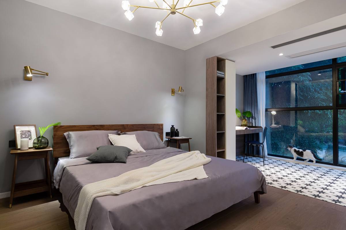 墻體定制一面儲物柜。收納功能超級強(qiáng)大,以不同款式地板分區(qū)的設(shè)計,將睡眠區(qū)和休閑區(qū)分開,將原有的陽臺納入臥室,擴(kuò)大臥室的面積,一整面落地窗保證了房間的光源充足。