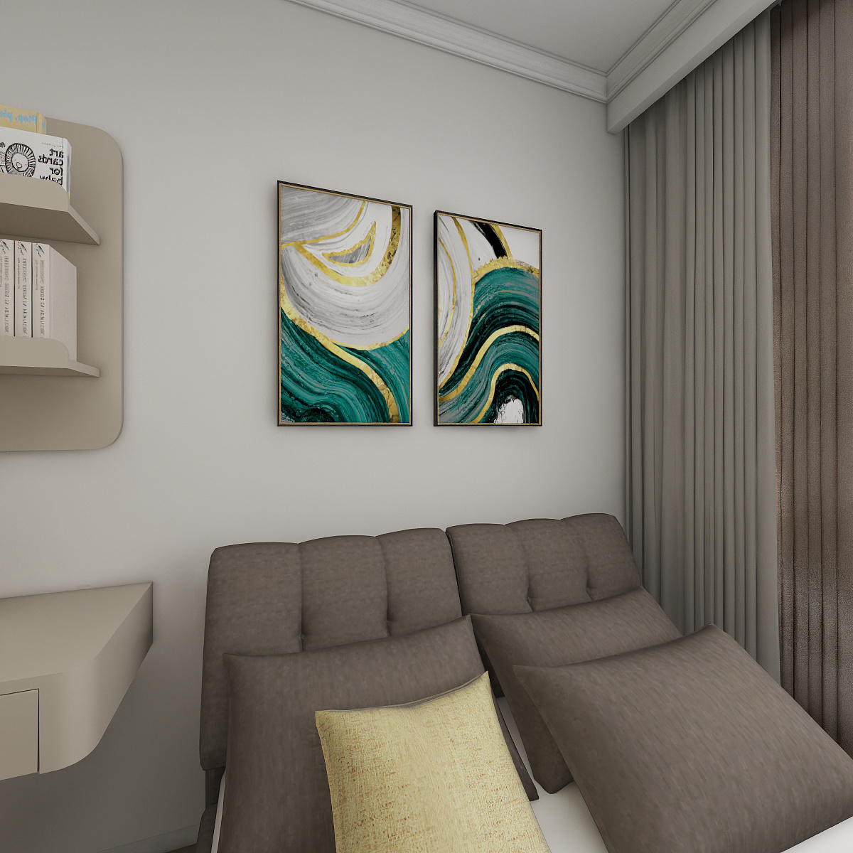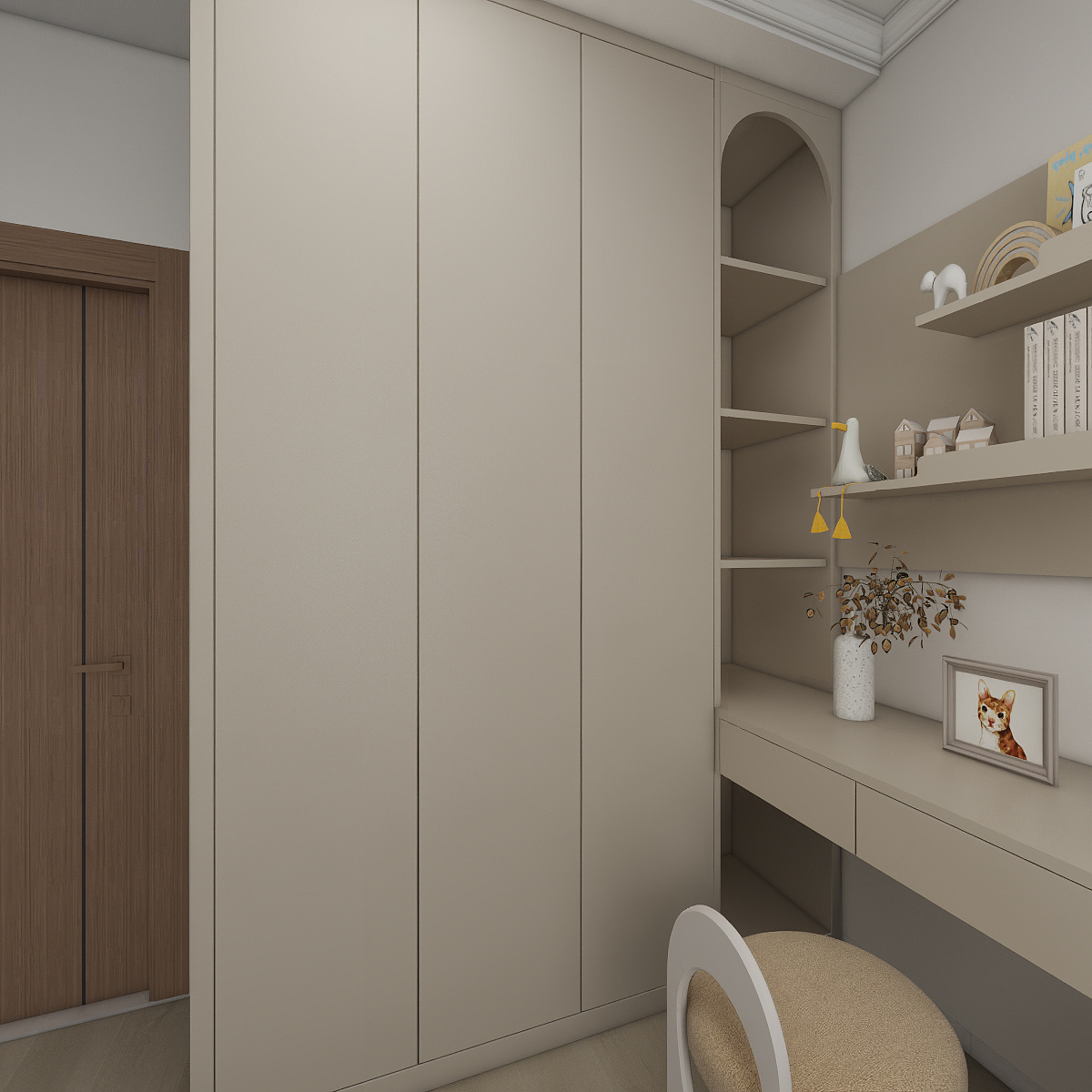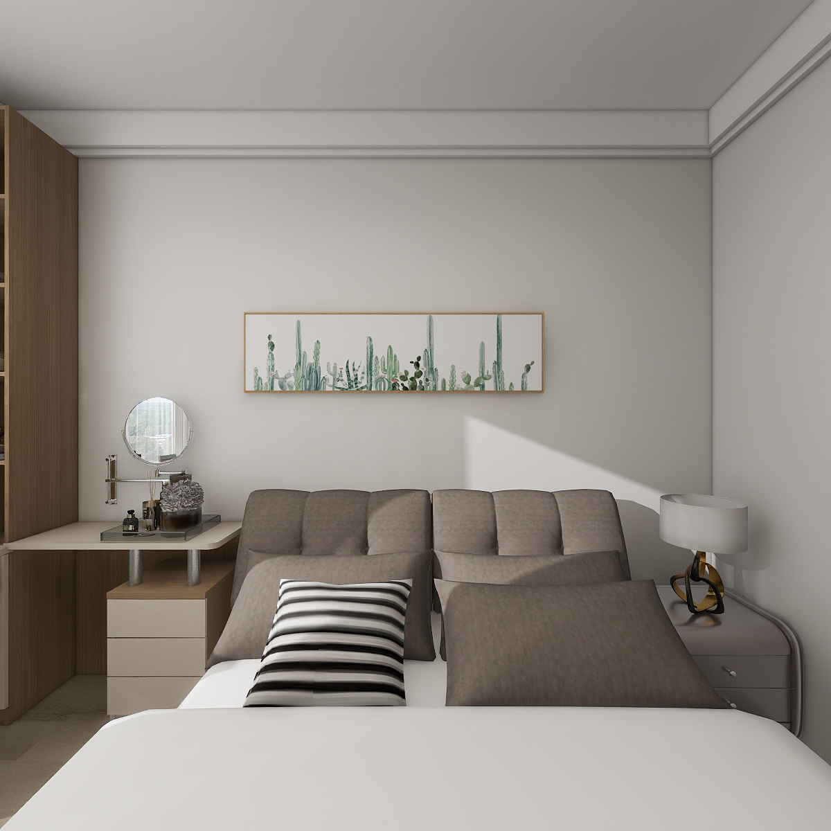 整個(gè)臥室空間化繁為簡,輕松的造型,增加辦公空間,在睡覺與辦公之間找到了平衡,打造了溫柔舒暢的睡眠氛圍。