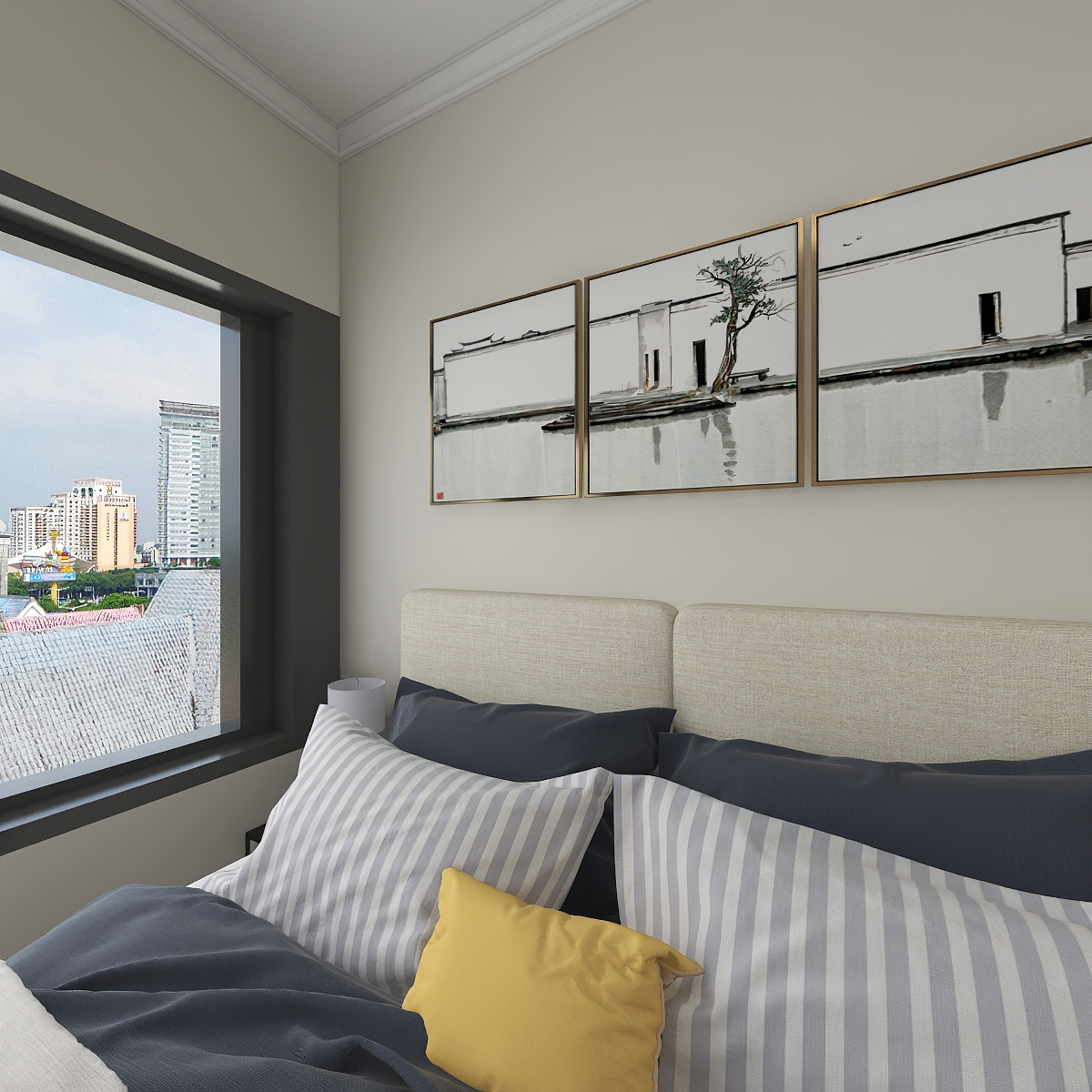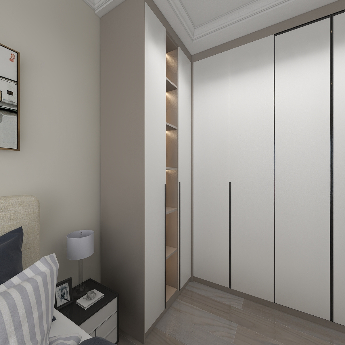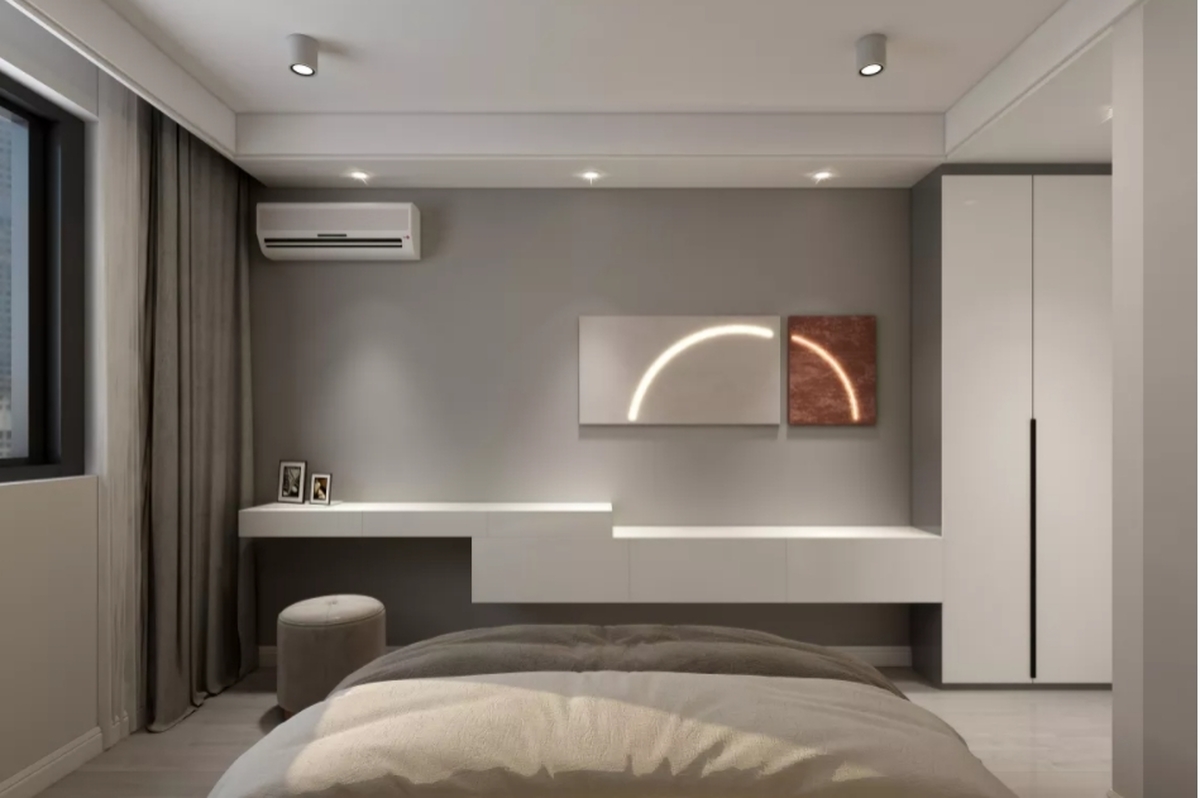 整個(gè)臥室空間化繁為簡(jiǎn),輕松的造型,打造了溫柔舒暢的睡眠氛圍。