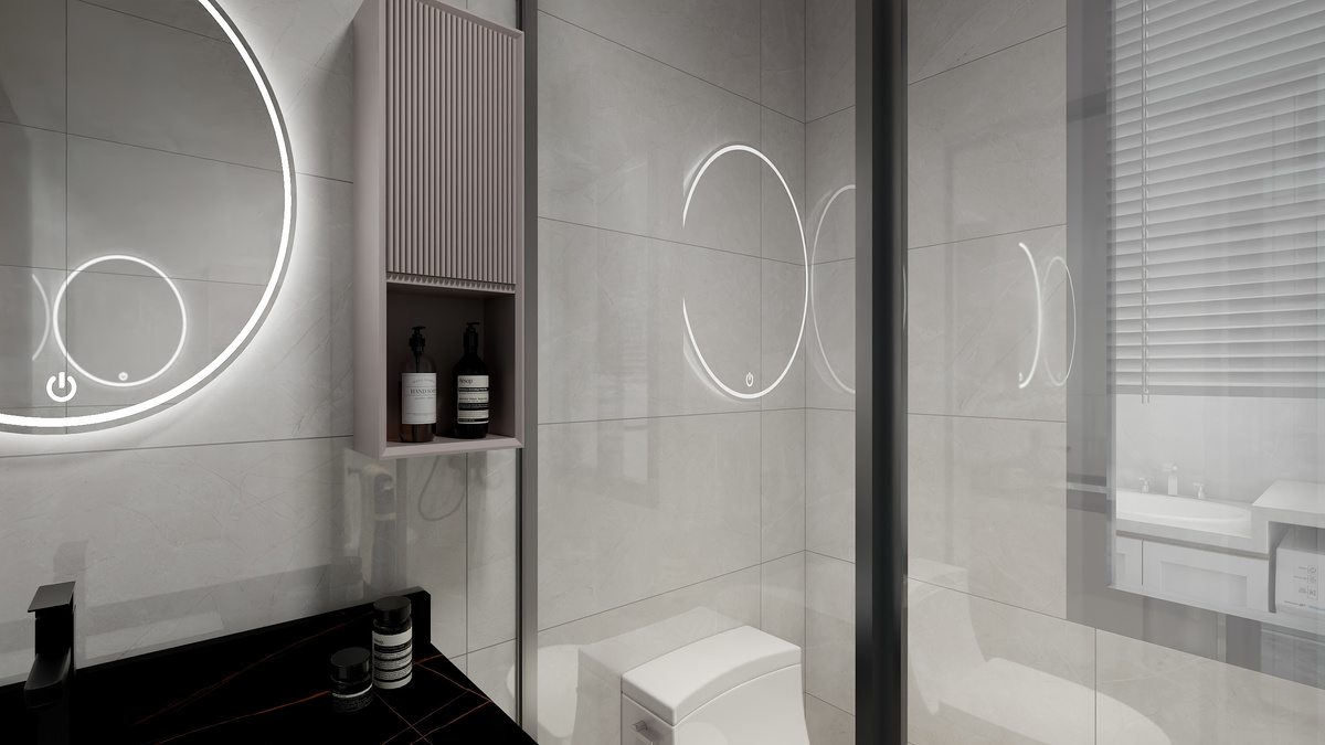 以低飽和度的色彩為基調(diào),自帶高級(jí)感采用反光度十足的鏡面磚。渾然天成的質(zhì)感,經(jīng)得起歲月的打磨。