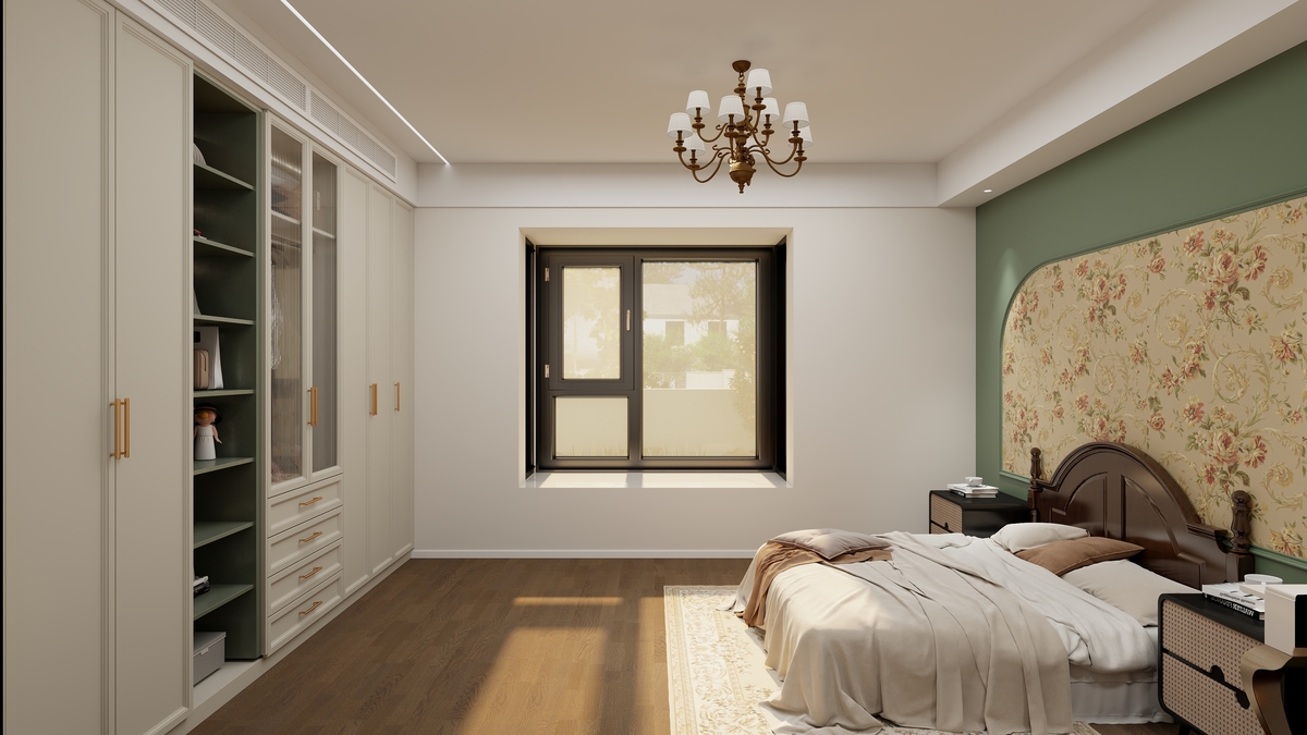 主臥的配色以暖色調(diào)彩色系為空間主色調(diào),如可可蛋奶等。簡(jiǎn)約美式復(fù)古,胡桃木色的家具配上簡(jiǎn)約的硬裝,簡(jiǎn)潔又大氣,靜謐又高級(jí)的感覺(jué),很優(yōu)雅的臥室