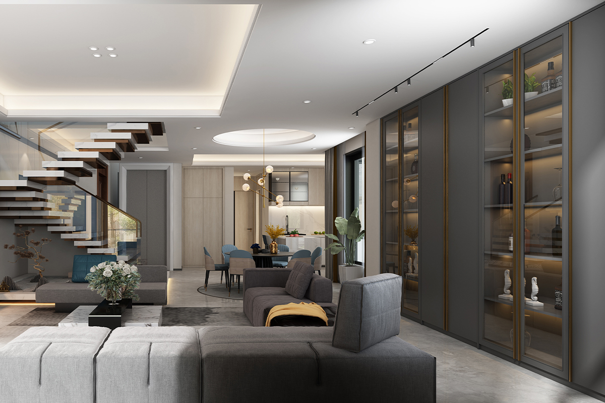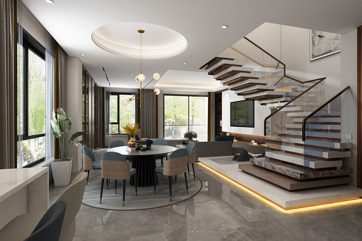 作為本次設(shè)計(jì)方案的亮點(diǎn),樓梯的改造設(shè)計(jì)是非常驚艷的,將原本藏在樓梯間的樓梯重新造型,改造,利用木質(zhì),石材,金屬,玻璃幾種元素的碰撞,再配合柔和的燈光,將原本平平無奇的樓梯作為空間的亮點(diǎn)。