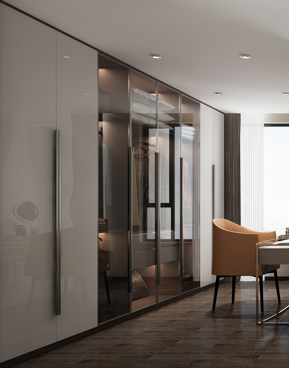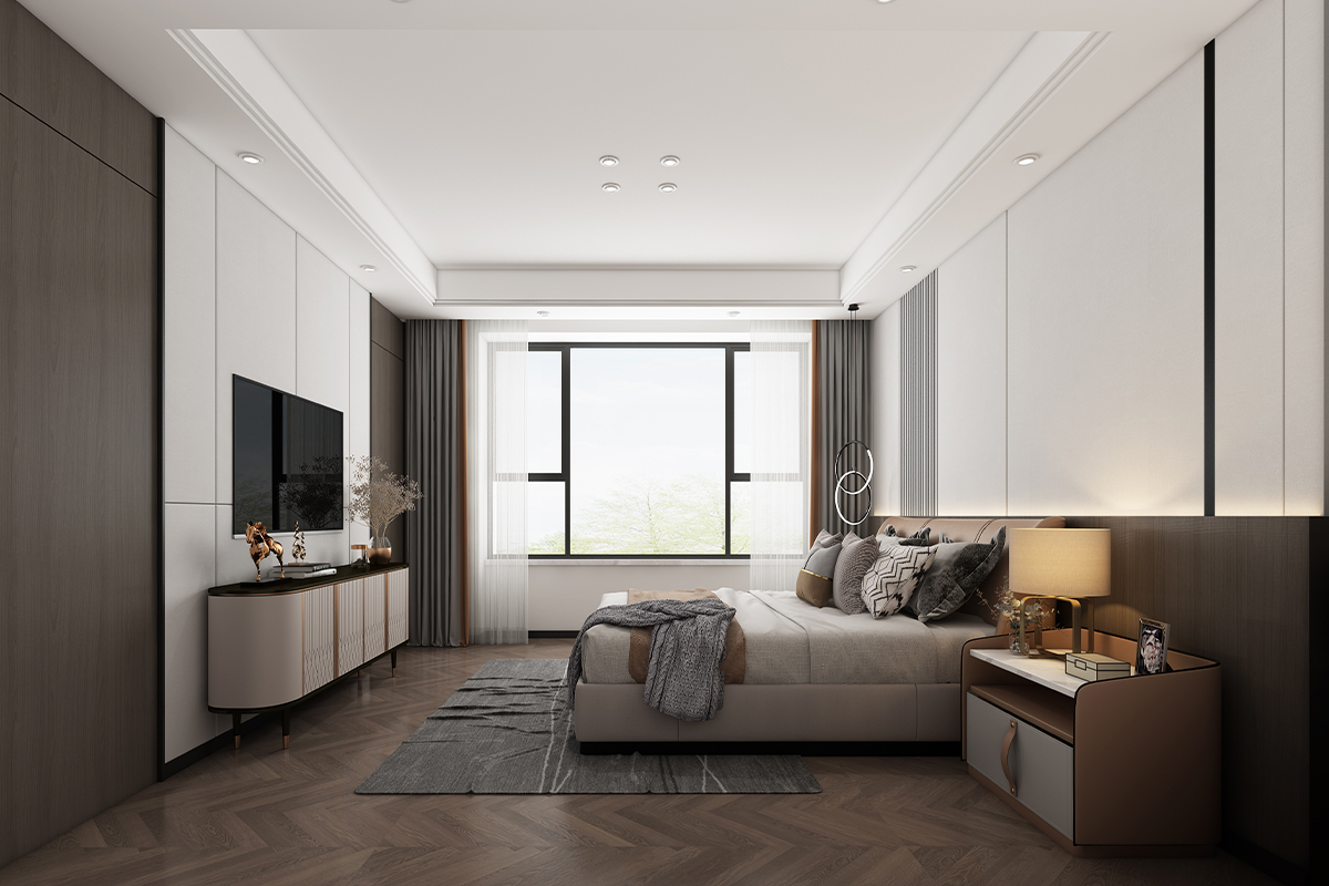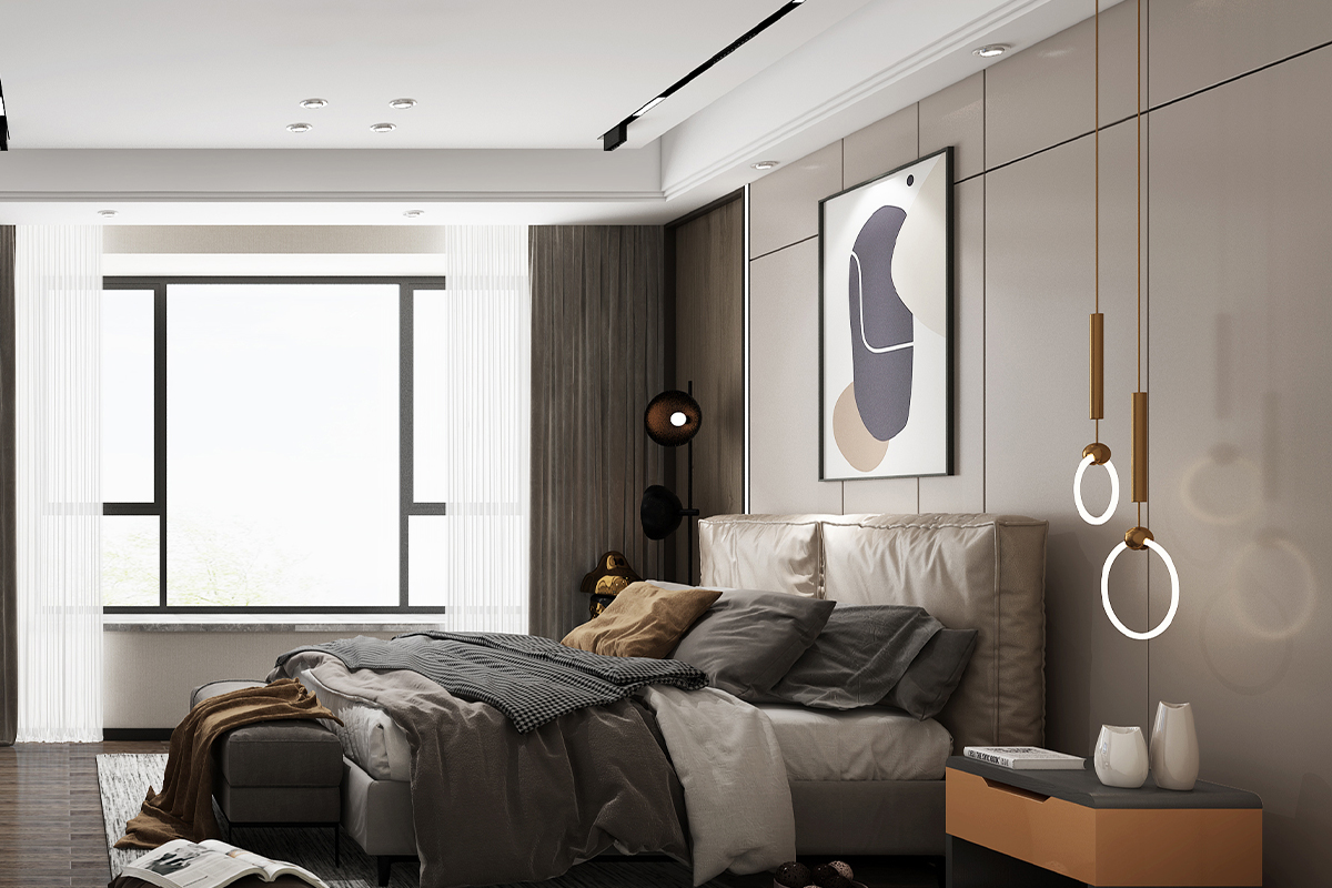 主臥整體簡(jiǎn)約且治愈,床靠的設(shè)計(jì)讓其主人在睡前閱讀的時(shí)候可以更加放松,梳妝臺(tái)和衣帽間一體化的設(shè)計(jì),再加上洄游動(dòng)線的輔助,讓整個(gè)空間更加靈動(dòng);無主燈的設(shè)計(jì)讓空間更加柔和,營造舒適溫暖的休息空間。