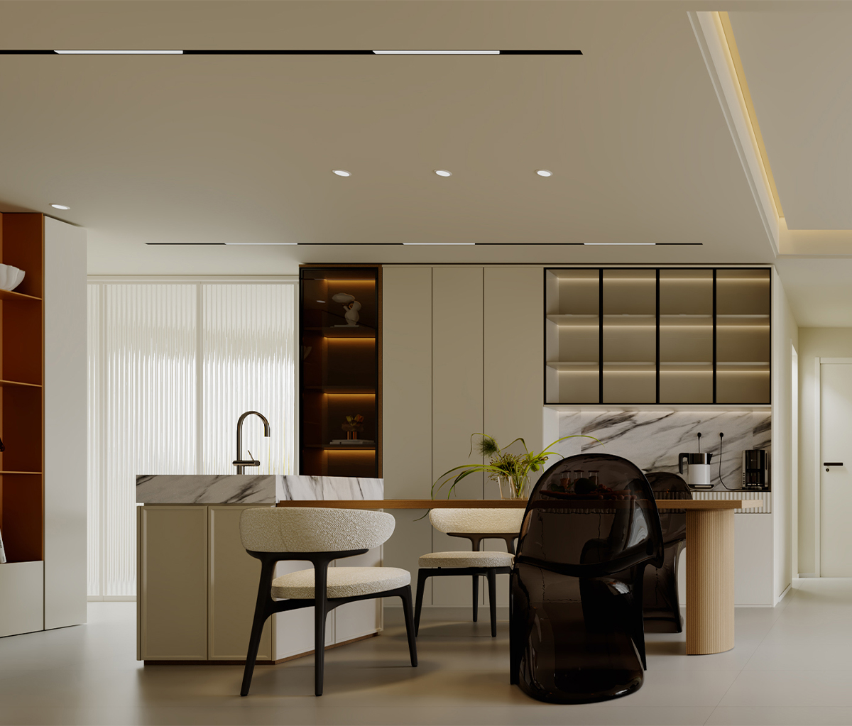 縮短動線增加舒適度,方便每天的生活。餐廳的美學(xué),也是人間的煙火氣;簡單大氣。