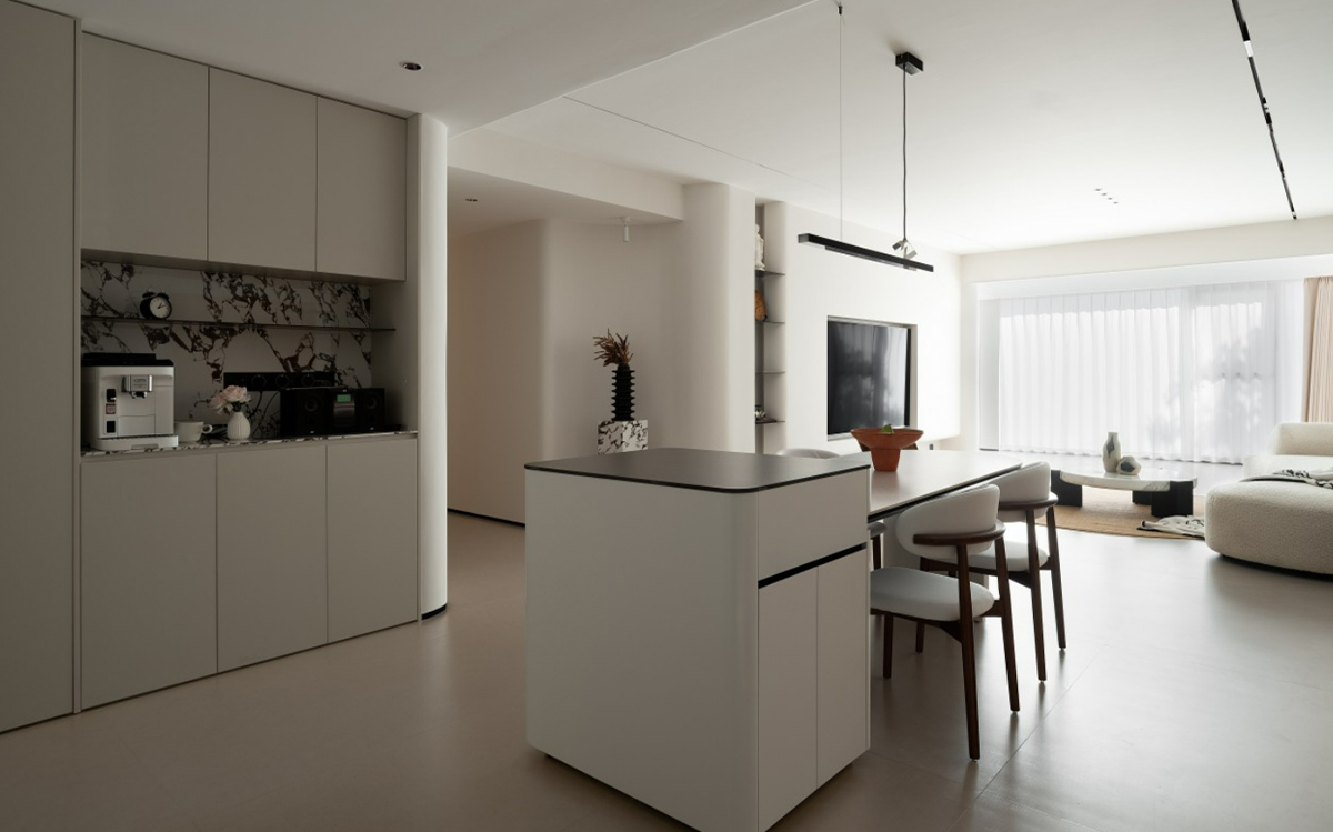 全開放的客餐廳布局,極大地延伸了視線,給人一種開闊的視野感。軟裝搭配淺色系沙發(fā),使整個空間的氛圍恰到好處,再以奶油色調為主基調,營造輕松且舒適的家。