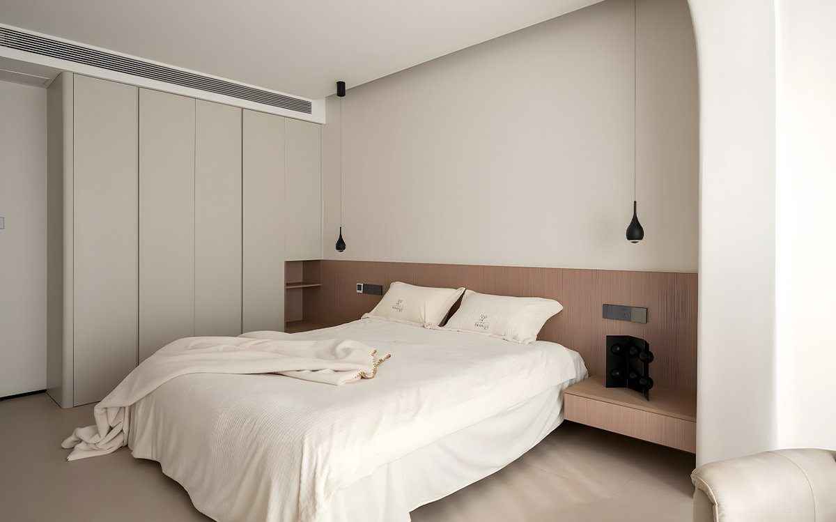 白色是這個搭配的主打色,它帶來了一種純凈與清爽的氛圍。床上的素雅白床單和蓬松的白色棉被,讓你仿佛置身于云端,舒適到讓人忍不住沉醉其中。