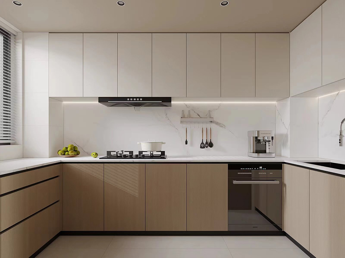 廚房改成開放式廚房讓空間顯得更加大氣,整體的南北通透性更強(qiáng),與客餐廳融為一體,櫥柜連接通頂柜,柜門與全屋色調(diào)和諧一致,打造溫柔好看的實(shí)木奶油廚房。