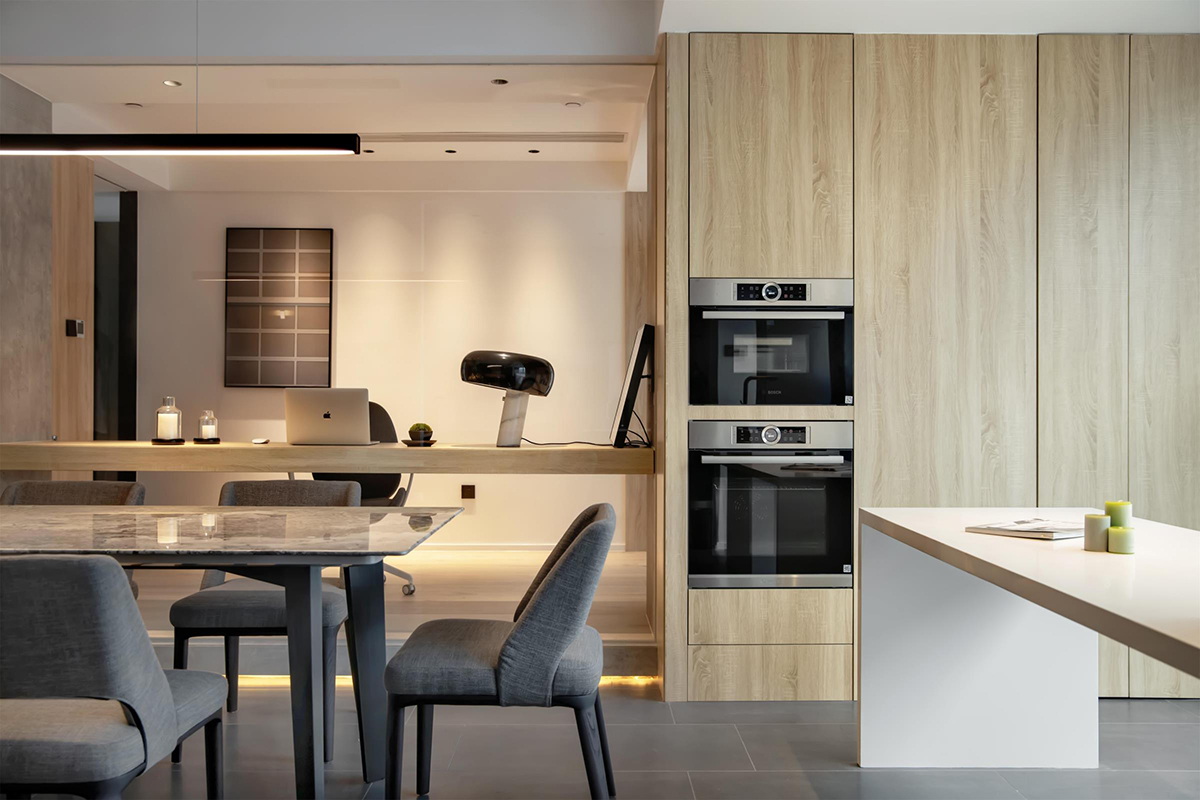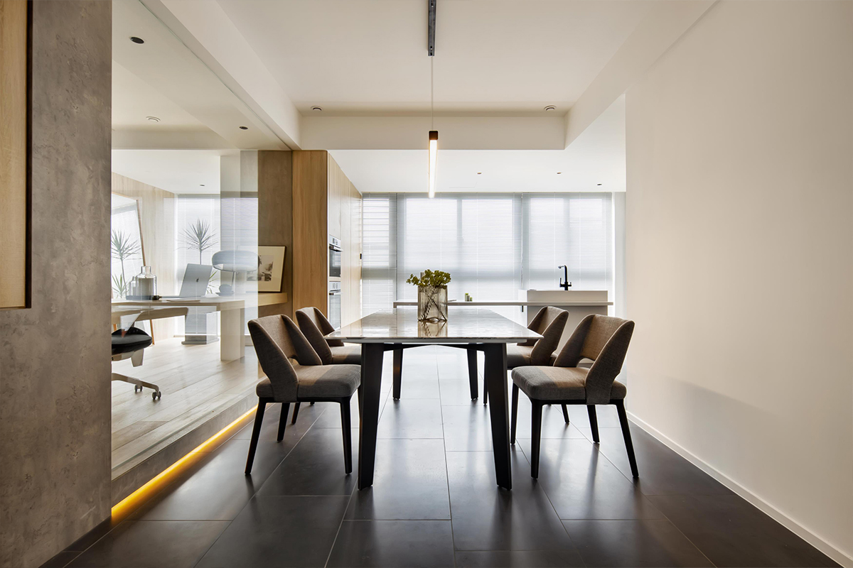 餐廳使用深色餐桌椅,搭配簡(jiǎn)約而現(xiàn)代的餐具,以及柔和的暖色調(diào)燈光,這樣的布置使整個(gè)餐廳看起來簡(jiǎn)潔而雅致,創(chuàng)造出一個(gè)優(yōu)雅而舒適的就餐環(huán)境,讓人沉浸在美食和交流的愉悅氛圍中。