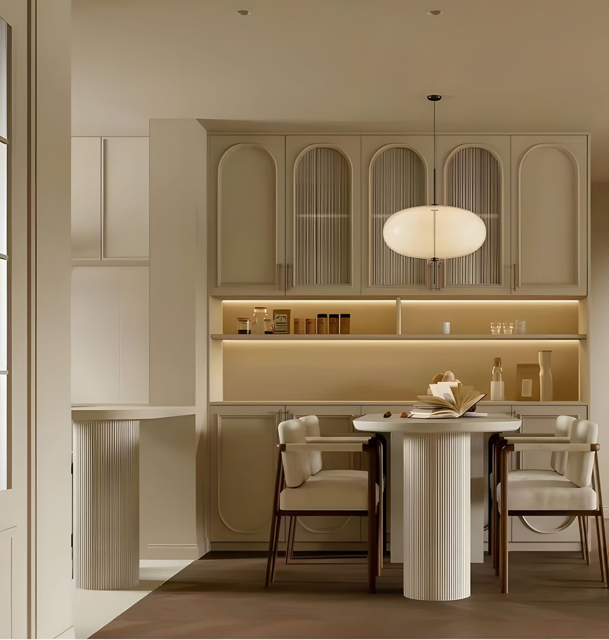 餐廳的設計則注重與客廳的連貫性,營造出舒適而優(yōu)雅的用餐環(huán)境。用奶油色的餐桌搭配細致精美的餐具,展現(xiàn)出法國浪漫的風情。別致的吊燈和精美的墻飾,更增添了一份高貴與典雅。而輕薄透明的窗簾則將外部的美景引入室內(nèi),讓您在享用美食的同時,仿佛置身于法國鄉(xiāng)村的優(yōu)雅氛圍中。
