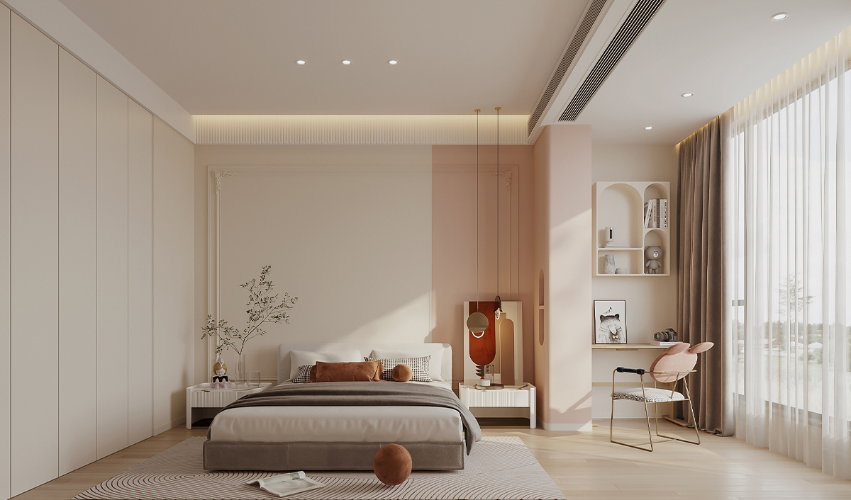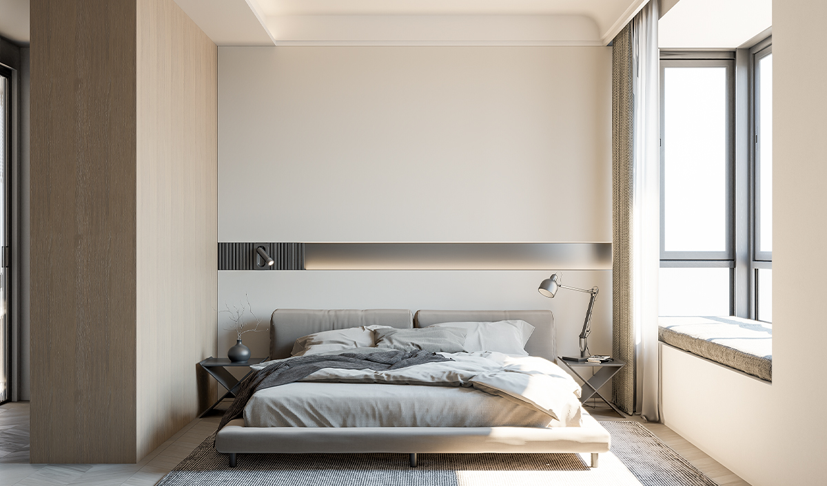 次臥搭配床頭吊燈制造溫暖的氛圍,以簡約自然本質(zhì)打造極簡的生活空間。