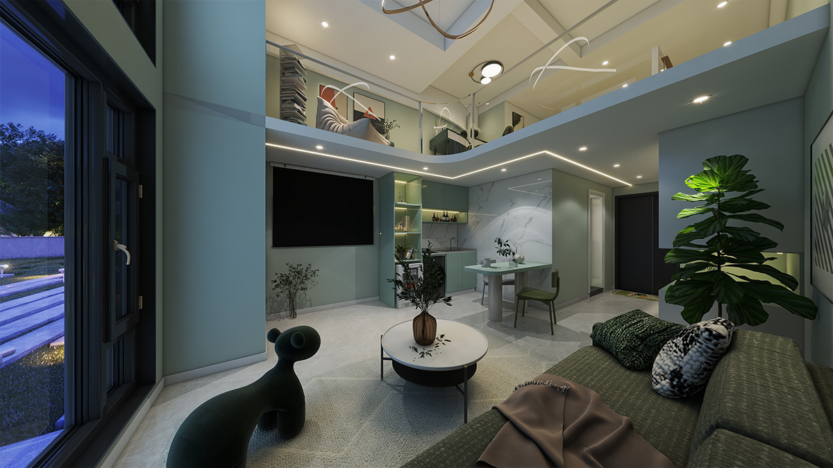 采用了精簡手法,去掉了不必要的元素,如吊燈、柜體和隔斷,使整個空間更加明亮通透。中間挑空,邊上采用弧形過道,使整個空間更加寬敞。吊頂增加了線性燈來裝飾線條 。廚房區(qū)域采用花磚進行裝飾。