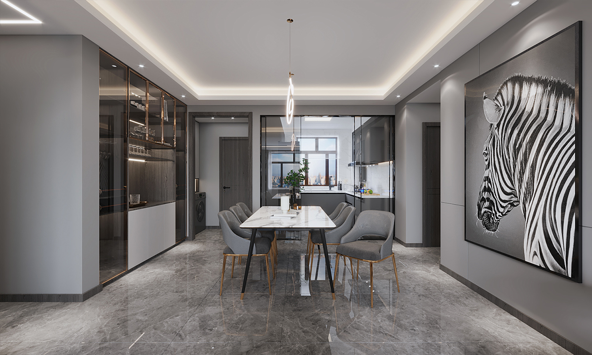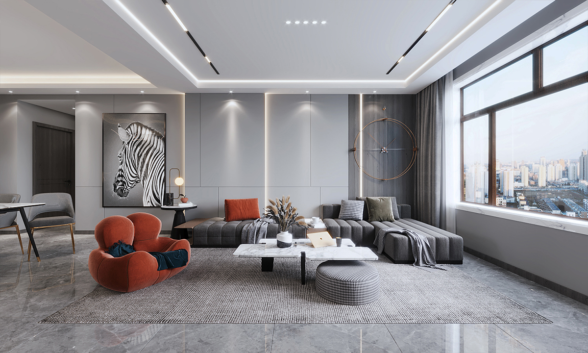 黑白灰風(fēng)格的室內(nèi)設(shè)計(jì)以簡(jiǎn)約、現(xiàn)代、優(yōu)雅為特點(diǎn),客廳做無主燈設(shè)計(jì),地面通鋪灰色大理石瓷磚,電視墻做了一個(gè)懸空的,材質(zhì)也是大理石的,旁邊做了一個(gè)通頂?shù)年惲姓故竟?,這樣一個(gè)簡(jiǎn)約時(shí)尚又富有高級(jí)感的客廳誰不愛呢。